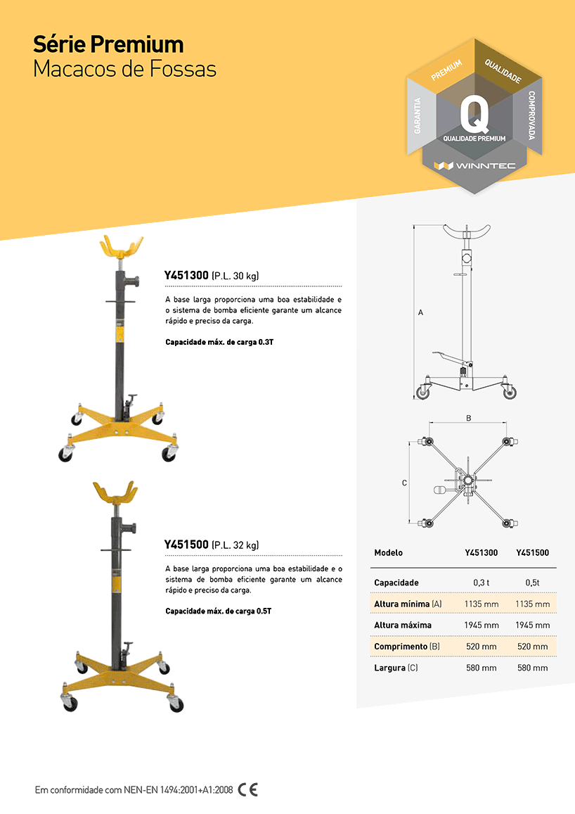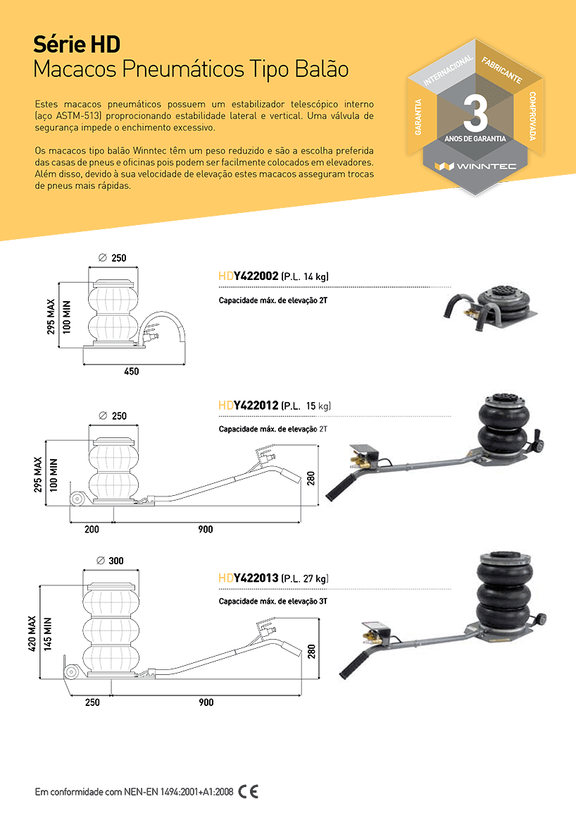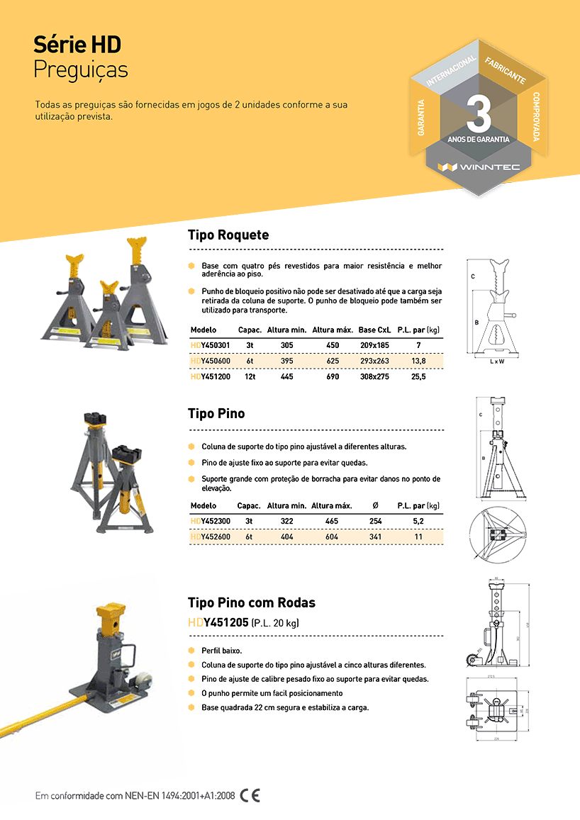 Base de apoio sólida e bem dimensionada para máxima estabilidade da carga.