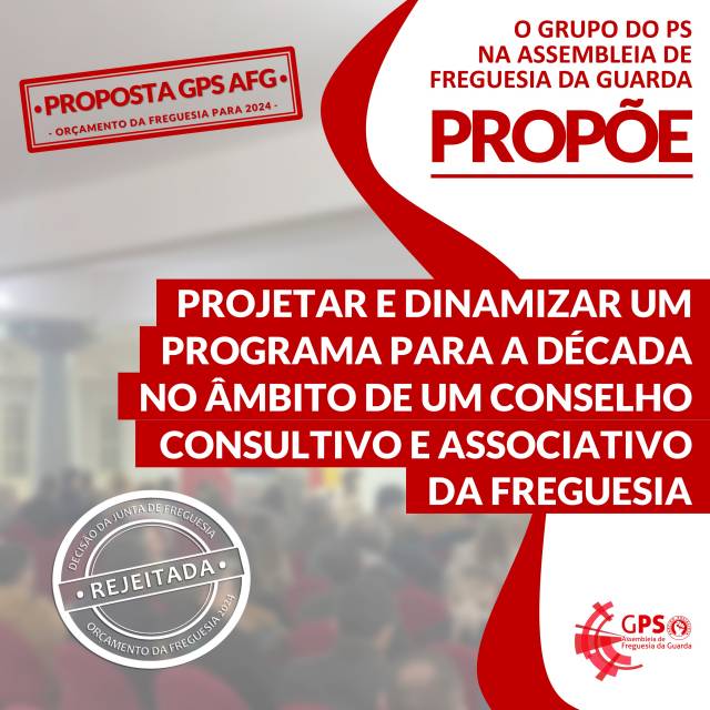 Da análise às conclusões apresentadas pela Junta de Freguesia, o GPS AFG concluiu, na 11.ª Sessão da Assembleia de Freguesia da Guarda, decorrida a 27 de dezembro de 2023, que nenhuma das quatro propostas apresentadas pelo Grupo foi aceite pela Junta de Freguesia, sendo que, em relação a esta proposta, a Junta de Freguesia diz que já o faz, de uma maneira absolutamente informal, indiscriminada, não periódica e envolvendo, sem critério, algumas entidades. O executivo esquece-se do intuito da iniciativa, onde a criação do conselho consultivo é apenas um dos pontos.