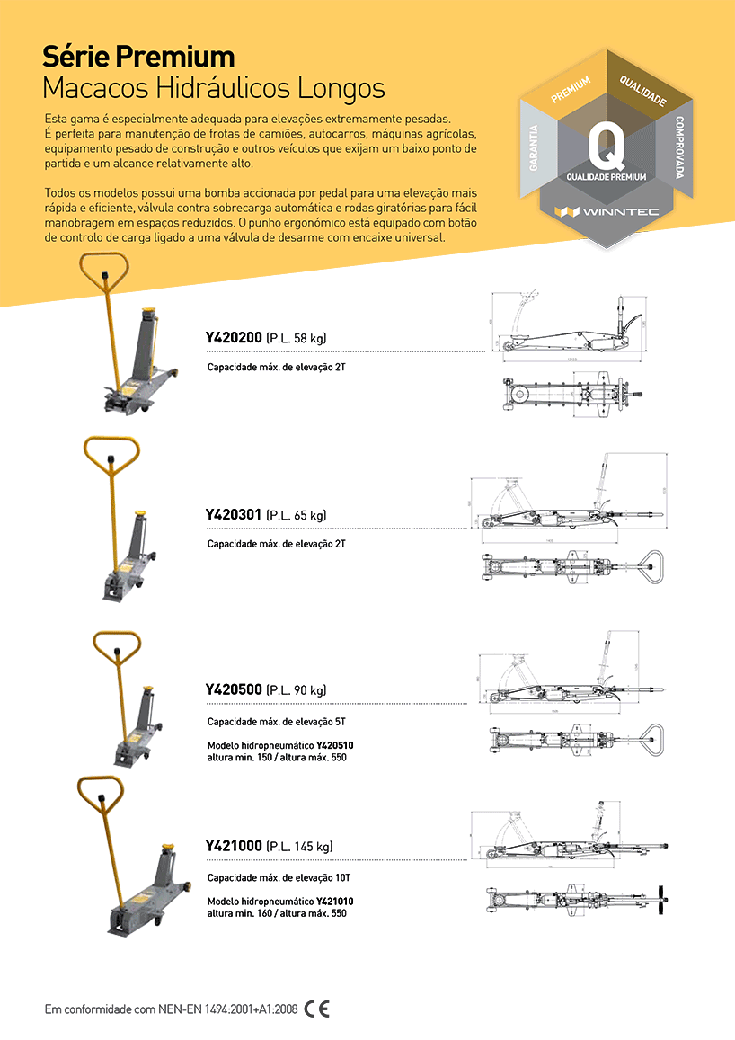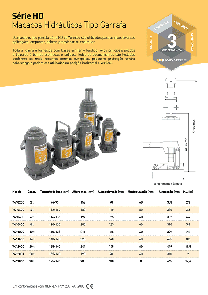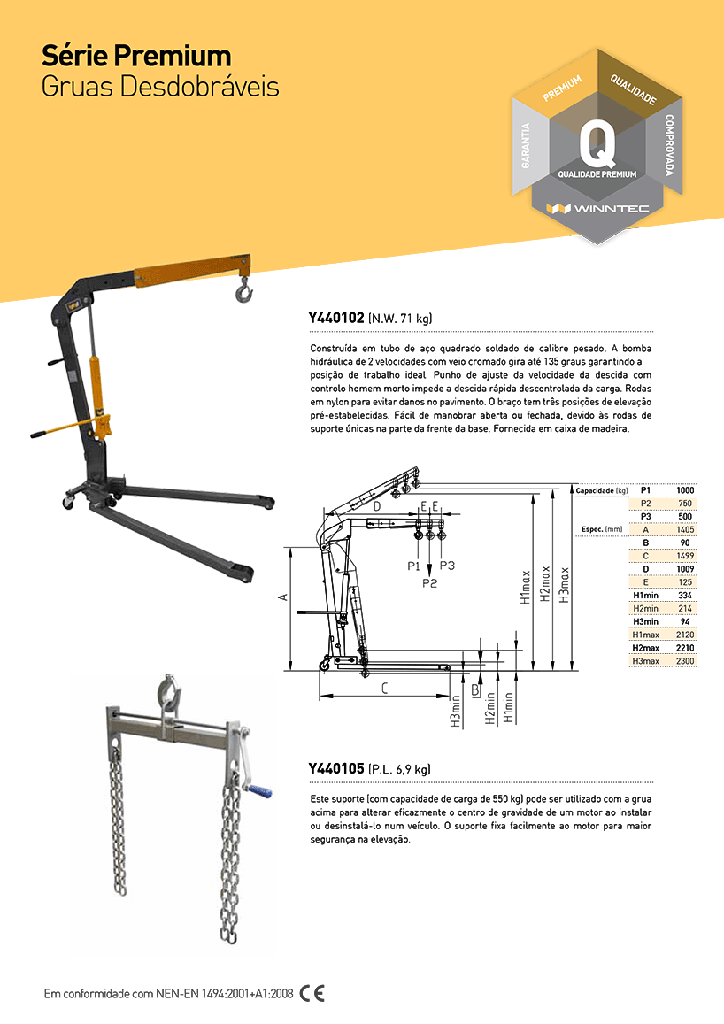 Base de apoio sólida e bem dimensionada para máxima estabilidade da carga.