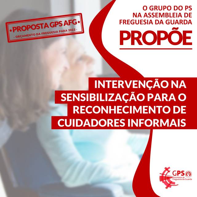 O Grupo do PS na Assembleia de Freguesia da Guarda (GPS AFG) apresentou, a 02 de dezembro de 2021, em reunião com a Junta de Freguesia da Guarda (JFG) tendo em vista a apresentação de contributos para a proposta de Orçamento e Plano de Atividades da Freguesia da Guarda para 2022, uma proposta para que se promova uma intervenção na sensibilização para o reconhecimento de Cuidadores Informais.